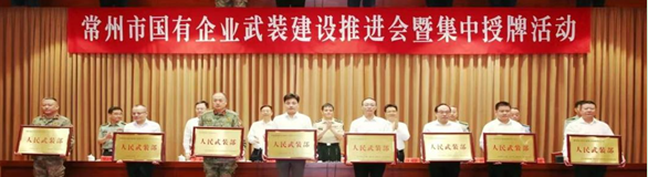 7月31日,在建軍98周年到來之際,常州市舉行國有企業武裝建設推進會暨集中授牌活動,深入學習貫徹習近平強軍思想。常林公司等企業人民武裝部相關負責人參加會議并接受授牌。